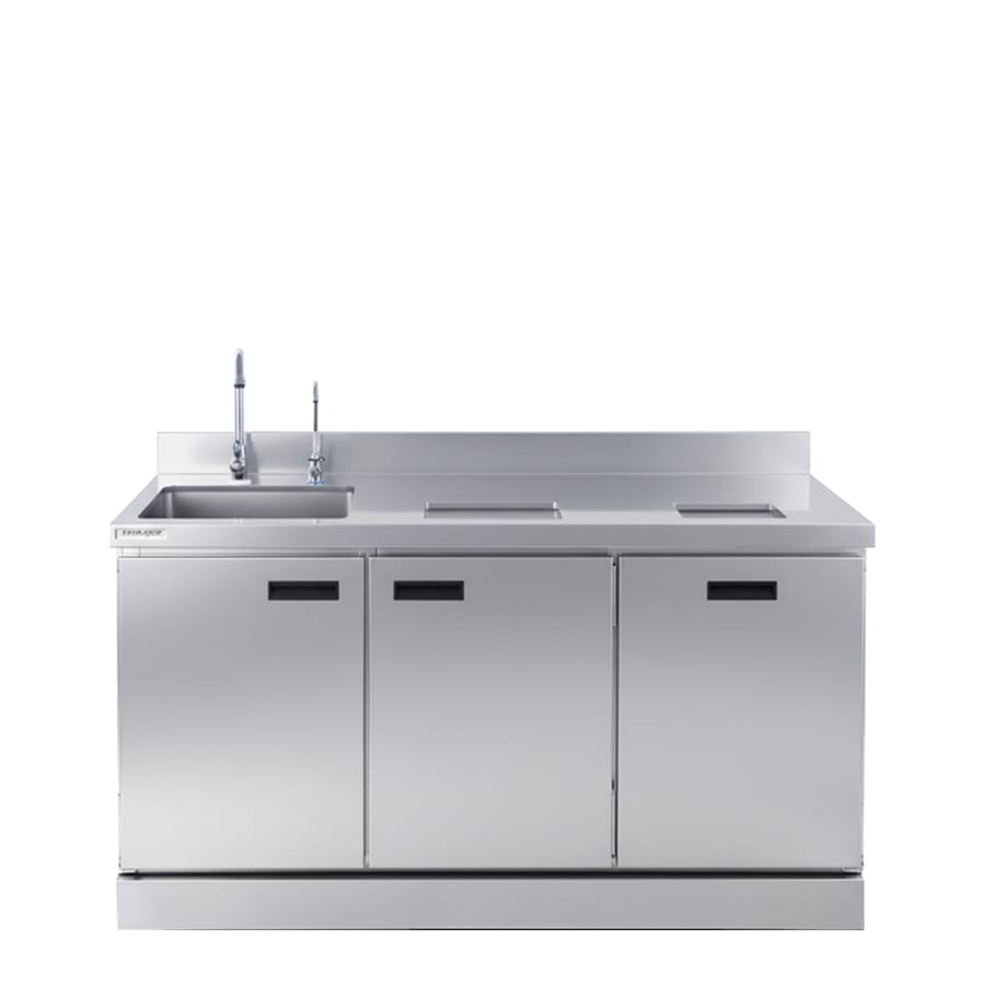 Quầy pha chế 3 cửa inox 304 kích thước 1500×700×800/100 được thiết kế cho các quán có lưu lượng khách trung bình – cao, cần không gian rộng rãi, lưu trữ nhiều nhưng vẫn gọn gàng, chuyên nghiệp.