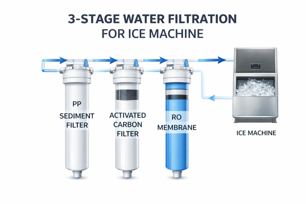 Chất lượng đá viên trong ngành F&B phụ thuộc trực tiếp vào hệ thống lọc nước của máy làm đá. Nguồn nước chưa được xử lý chứa tạp chất, clo dư và vi khuẩn gây ra đá đục, mùi lạ và ảnh hưởng đến hương vị đồ uống. Lõi lọc nước máy làm đá là bộ phận loại bỏ các tác nhân gây hại này, đảm bảo đá sạch và bảo vệ thiết bị.